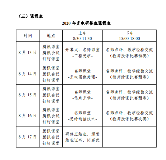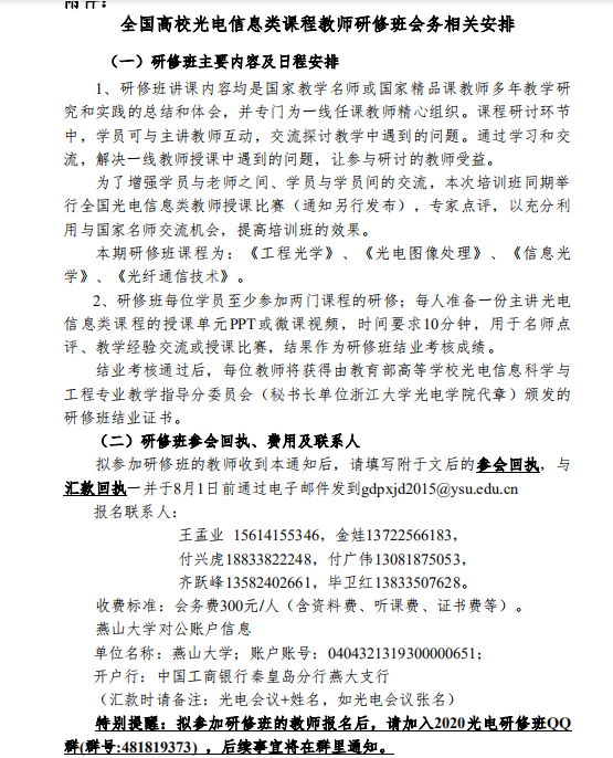 2020年(nián)全國(guó)高(gāo)校光電信息類課程教師研修班開始報名了,鑒于疫情防控的(de)需要,今年(nián)研修班改為(wèi)線上網絡培訓,歡迎老師們(men)報名參加。